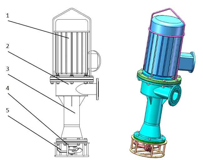 泵下部鉸刀對(duì)介質(zhì)進(jìn)行破碎、攪拌并推送進(jìn)入吸入腔,通過(guò)吸入腔內(nèi)的螺旋推進(jìn)器將介質(zhì)輸送至排出腔,排出腔內(nèi)葉輪對(duì)介質(zhì)進(jìn)行加壓輸送入管道。